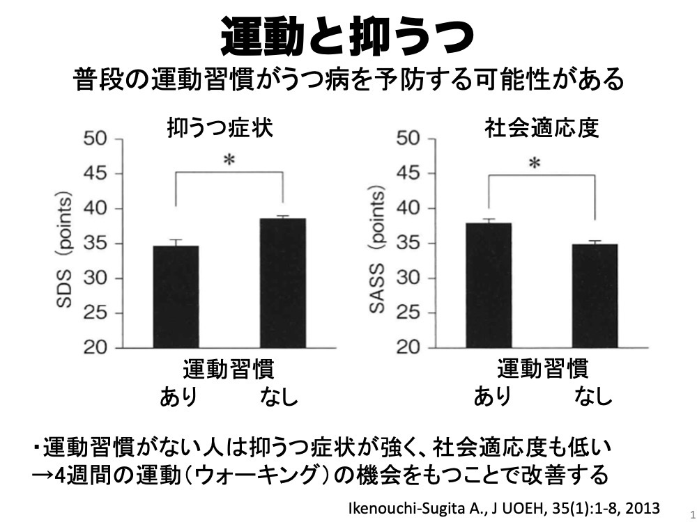 運動とメンタルヘルスの関係については以前から密接な関係があることが報告されていて、運動習慣がない人は気分の落ち込みなどの抑うつ症状があったり、社会生活に影響があったりすることが示唆されていました。